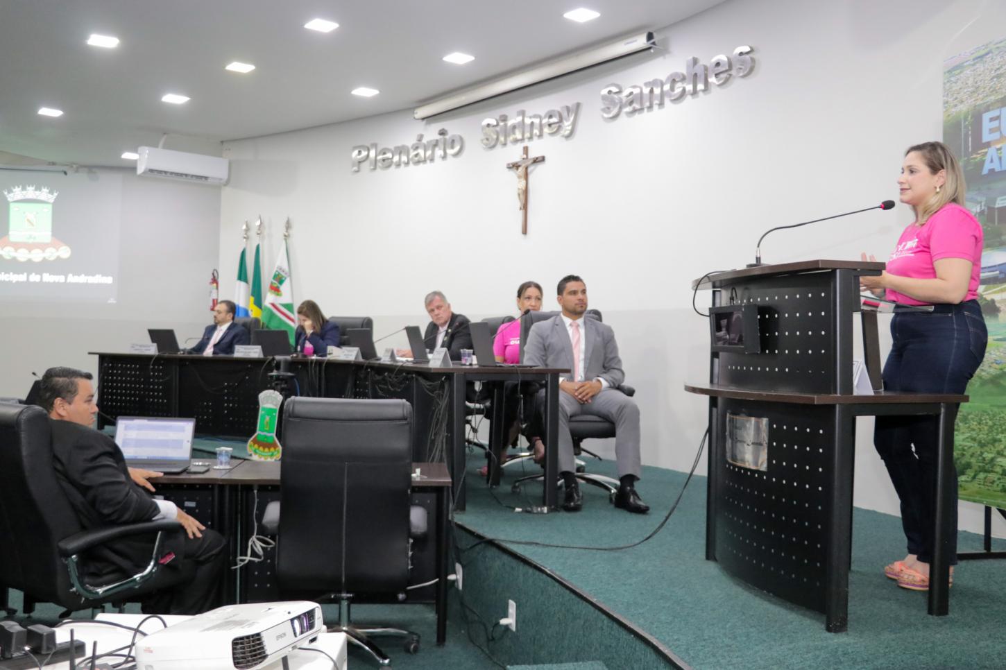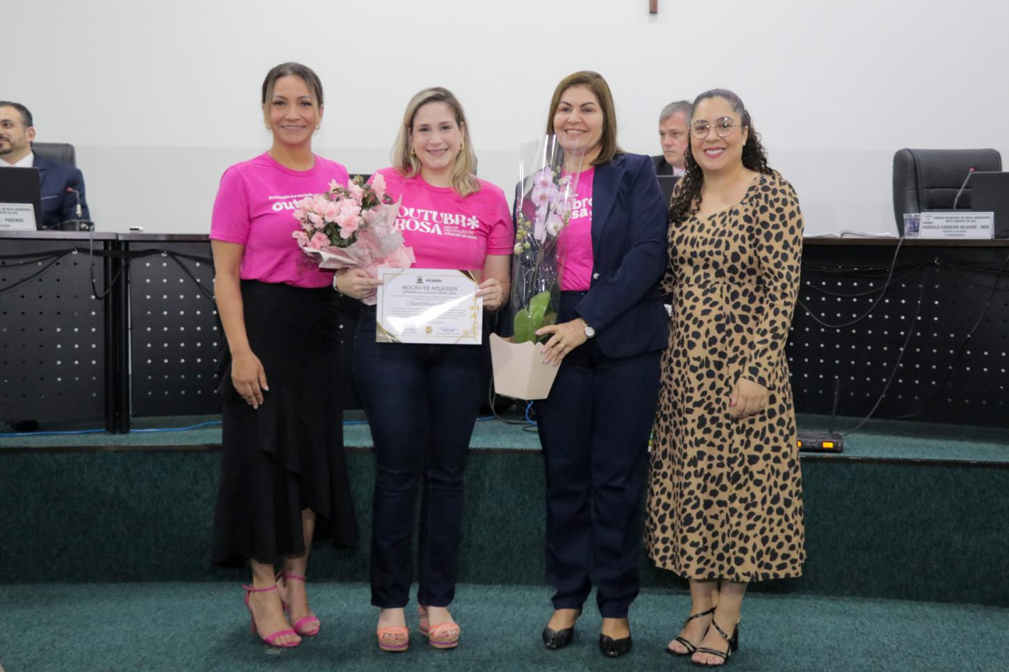 Neste momento especial, a enfermeira Ingrid Anuto usou a tribuna para apresentar os serviços oferecidos pelo Hospital de Amor, destacando o trabalho de excelência realizado pela instituição na prevenção e no atendimento oncológico. Logo após, foi a vez de Ingrid ser homenageada com uma Moção de Aplauso, em reconhecimento à sua sensibilidade, dedicação e profissionalismo na enfermagem. Um vídeo especial ressaltou sua trajetória e a importância do seu papel no acolhimento às pacientes.